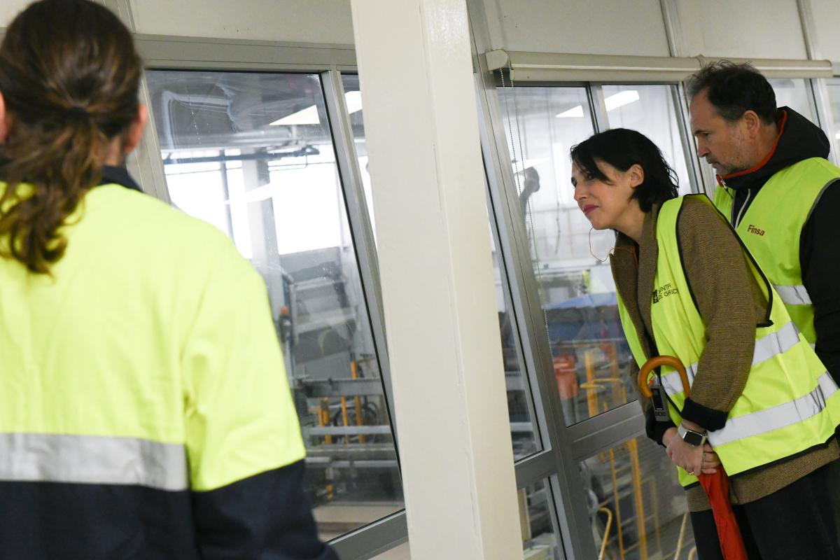A conselleira de Economía e Industria, María Jesús Lorenzana, visitou hoxe as instalacións de Finsa en Santiago de Compostela, onde destacou a tecnoloxía e a innovación que esta firma incorpora no seu proceso produtivo para seguir mellorando a súa competitividade.